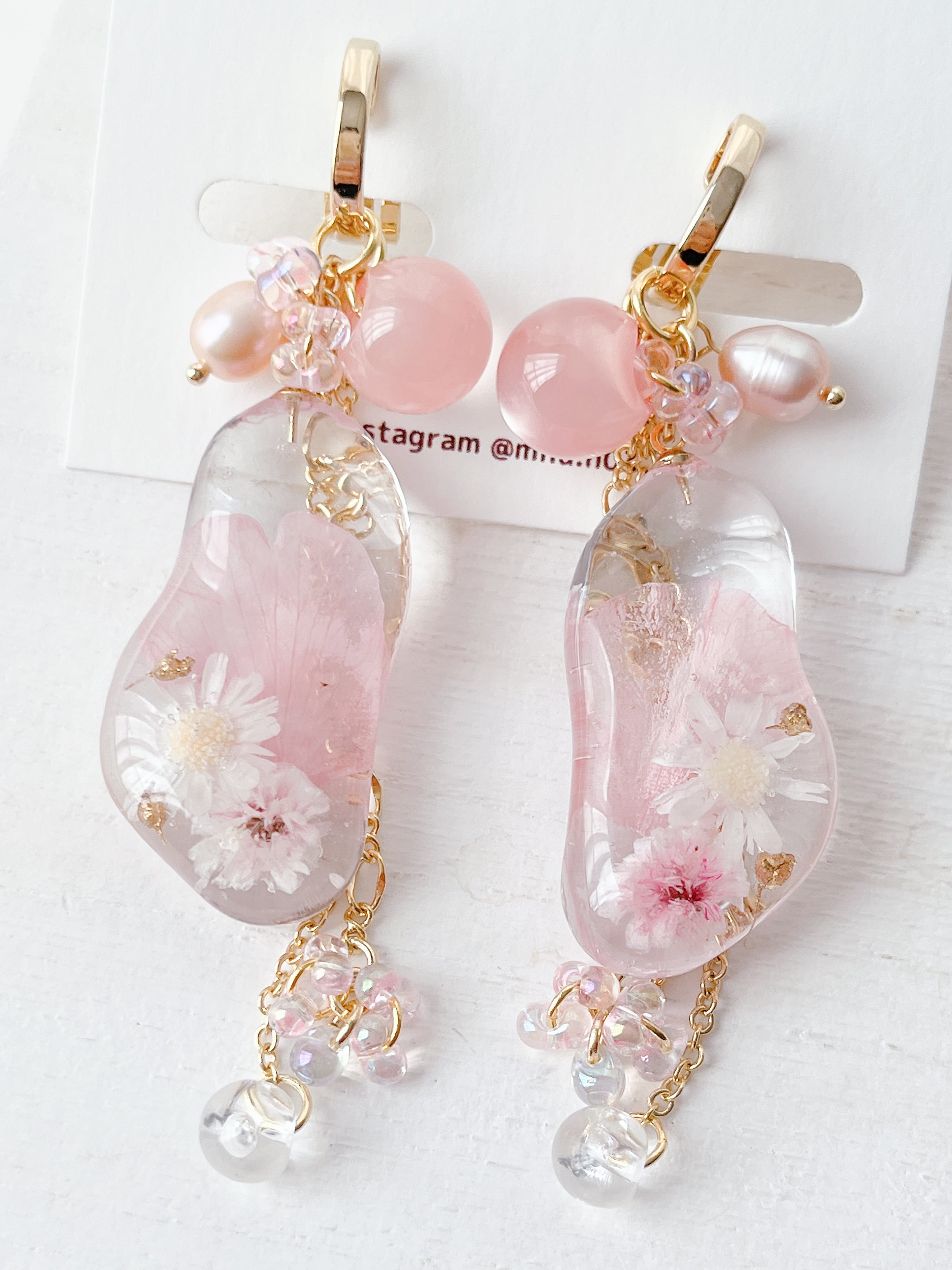 本物のソメイヨシノと桜色のかすみ草、桜色のビーズを組み合わせた桜づくしのイヤーアクセサリー。 半円のレジンのぷっくりとマーブルハートビーズから桜もちを連想させて作った優しい色合いのガーリーなアクセサリーです。 ゆらゆら部分のビーズも桜色のオーロラビーズを使用したりと春らしい明るい色合いを随所に感じられます。 size 約5.7cm ♡ ••┈┈┈┈┈┈┈┈•• ♡ この度は当店にお越し頂きありがとうございます。 ご購入前に確認事項をお読み頂いてからのご注文をお願い致します。 ピアス、イヤリングは基本的に金属アレルギー対応のサージカルステンレスを使用していますが個人差があるため100%アレルギー反応が出ないと保証は出来ません。ご理解ください。 ひとつひとつ心を込めて制作していますが小さな気泡が残っている場合があります。 本物のお花を使用しているため同じデザインでもお花の形や色味が変わることがあります。 唯一無二の作品としてお楽しみいただけたら嬉しいです。 お使いのモニターによって色の見え方が異なる場合があります。ご了承下さい。 お客様都合の返品交換は致しかねます。 初期不良に関しては商品到着後5日以内にご連絡下さい。 繊細な作品ですので強い衝撃や直射日光下での保存はお控え下さい。 水分や皮脂等は変色やサビの原因となります。使用後は柔らかい布等で拭いてから直射日光を避け、風通しのいい場所での保管をおすすめしております。 発送はクリックポストです。 大きいアクセサリーは送料が異なります。 ご質問等ございましたらご購入前にお気軽にメッセージお願い致します。 ♡ ••┈┈┈┈┈┈┈┈•• ♡