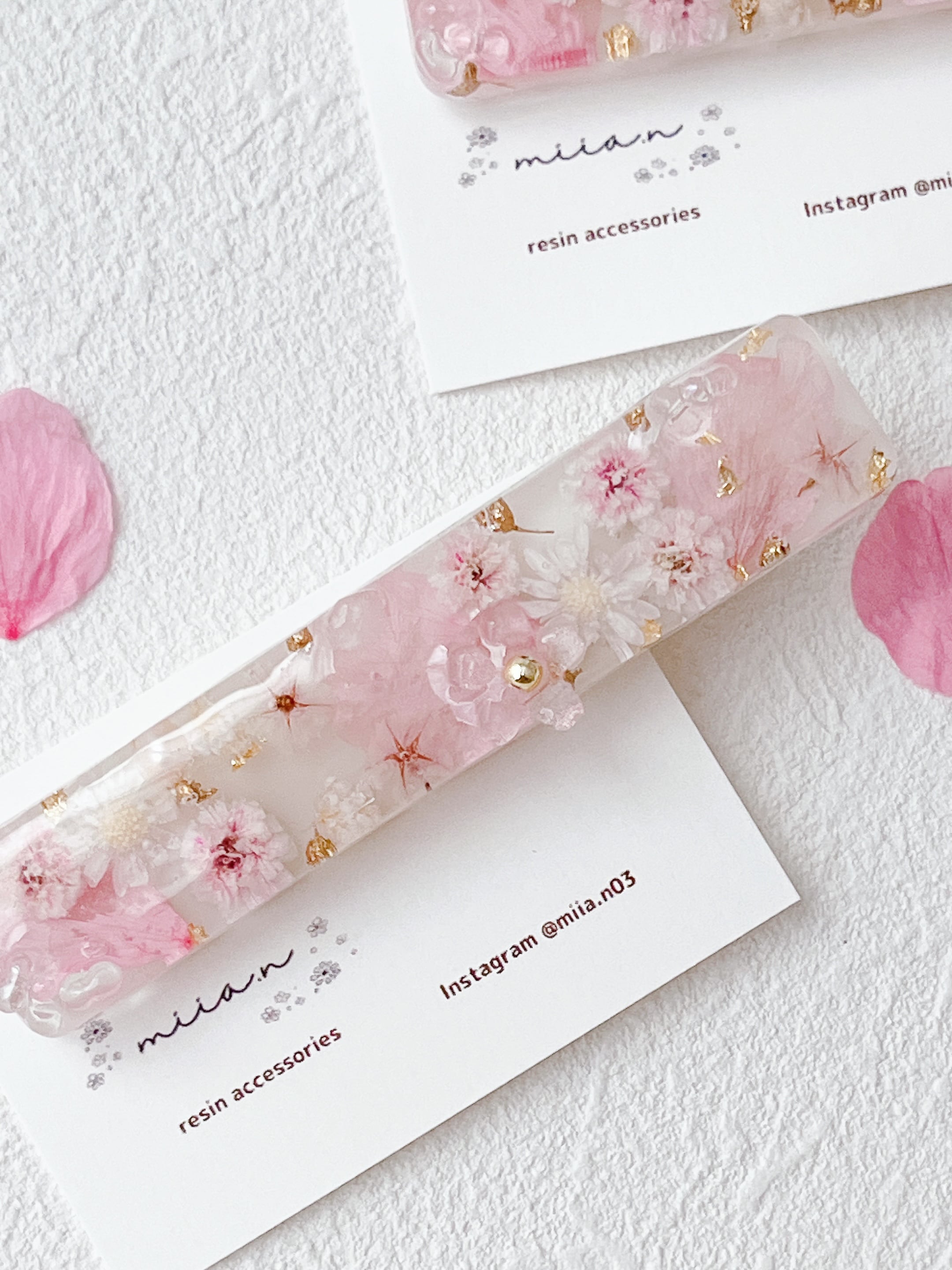 桜のミニレジンと本物のソメイヨシノのお花を封入したヘアクリップです。 桜が流れているようなデザインで所々にビーズや淡水パール、ローズクォーツを散りばめてアクセントになるようにあしらっています。 【桜吐息】は思わずため息が出るようなアクセサリーとフォロワーさんに付けて頂いたお名前です。 柔らかい雰囲気の中に春の雰囲気漂うアゥらピンクの色が明るい雰囲気にしてくれます。 size 約7.5×1.5cm ♡ ••┈┈┈┈┈┈┈┈•• ♡ この度は当店にお越し頂きありがとうございます。 ご購入前に確認事項をお読み頂いてからのご注文をお願い致します。 ピアス、イヤリングは基本的に金属アレルギー対応のサージカルステンレスを使用していますが個人差があるため100%アレルギー反応が出ないと保証は出来ません。ご理解ください。 ひとつひとつ心を込めて制作していますが小さな気泡が残っている場合があります。 本物のお花を使用しているため同じデザインでもお花の形や色味が変わることがあります。 唯一無二の作品としてお楽しみいただけたら嬉しいです。 お使いのモニターによって色の見え方が異なる場合があります。ご了承下さい。 お客様都合の返品交換は致しかねます。 初期不良に関しては商品到着後5日以内にご連絡下さい。 繊細な作品ですので強い衝撃や直射日光下での保存はお控え下さい。 水分や皮脂等は変色やサビの原因となります。使用後は柔らかい布等で拭いてから直射日光を避け、風通しのいい場所での保管をおすすめしております。 発送はクリックポストです。 大きいアクセサリーは送料が異なります。 ご質問等ございましたらご購入前にお気軽にメッセージお願い致します。 ♡ ••┈┈┈┈┈┈┈┈•• ♡