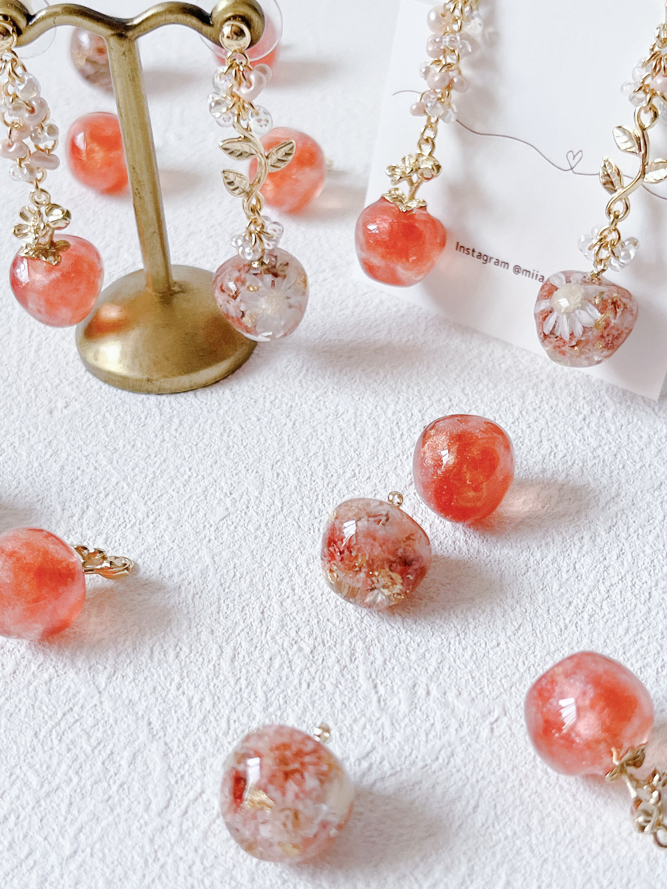 ころんとかわいいかすみ草とスターフラワー、金箔を封じ込めたりんごとラメ入りの本物のようなグラデーションのりんご。