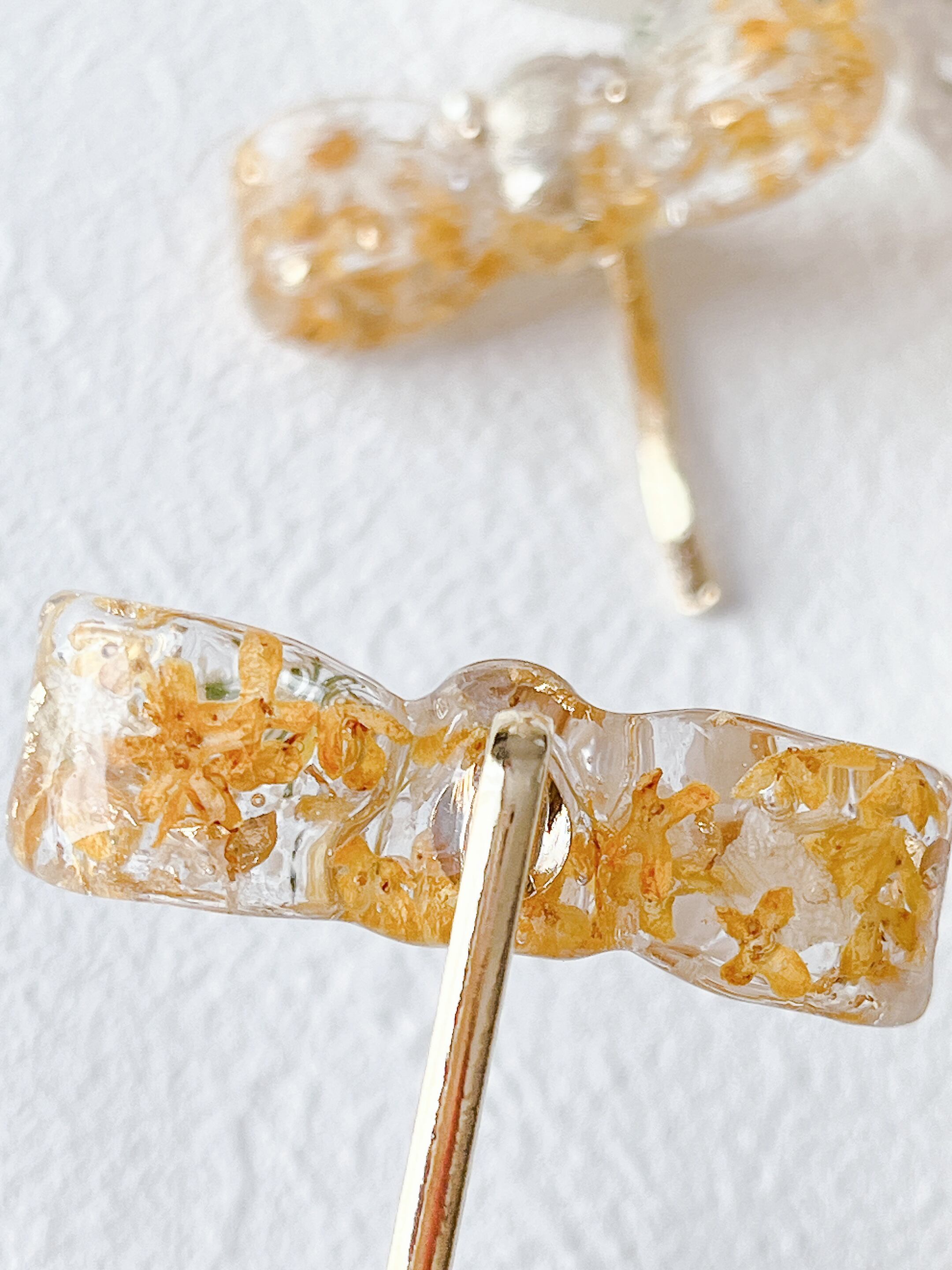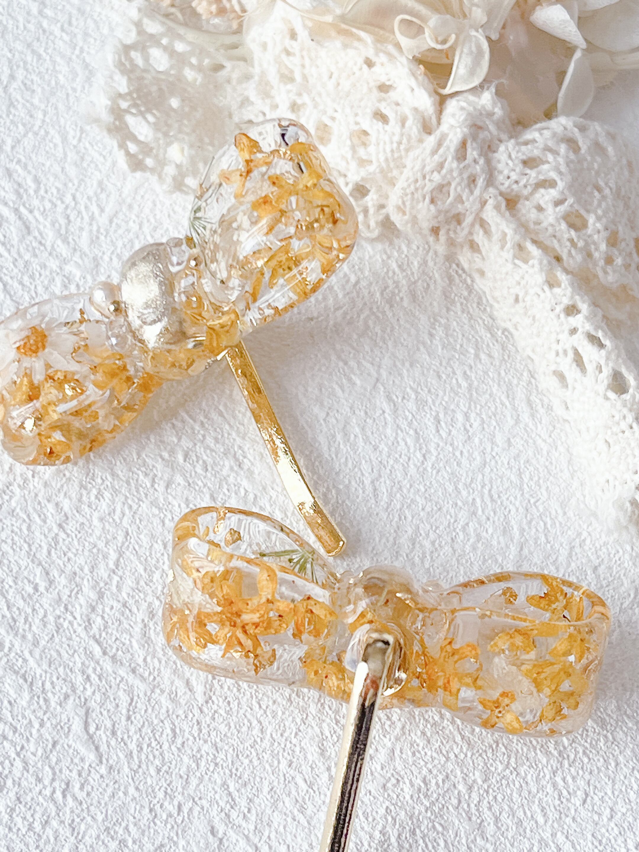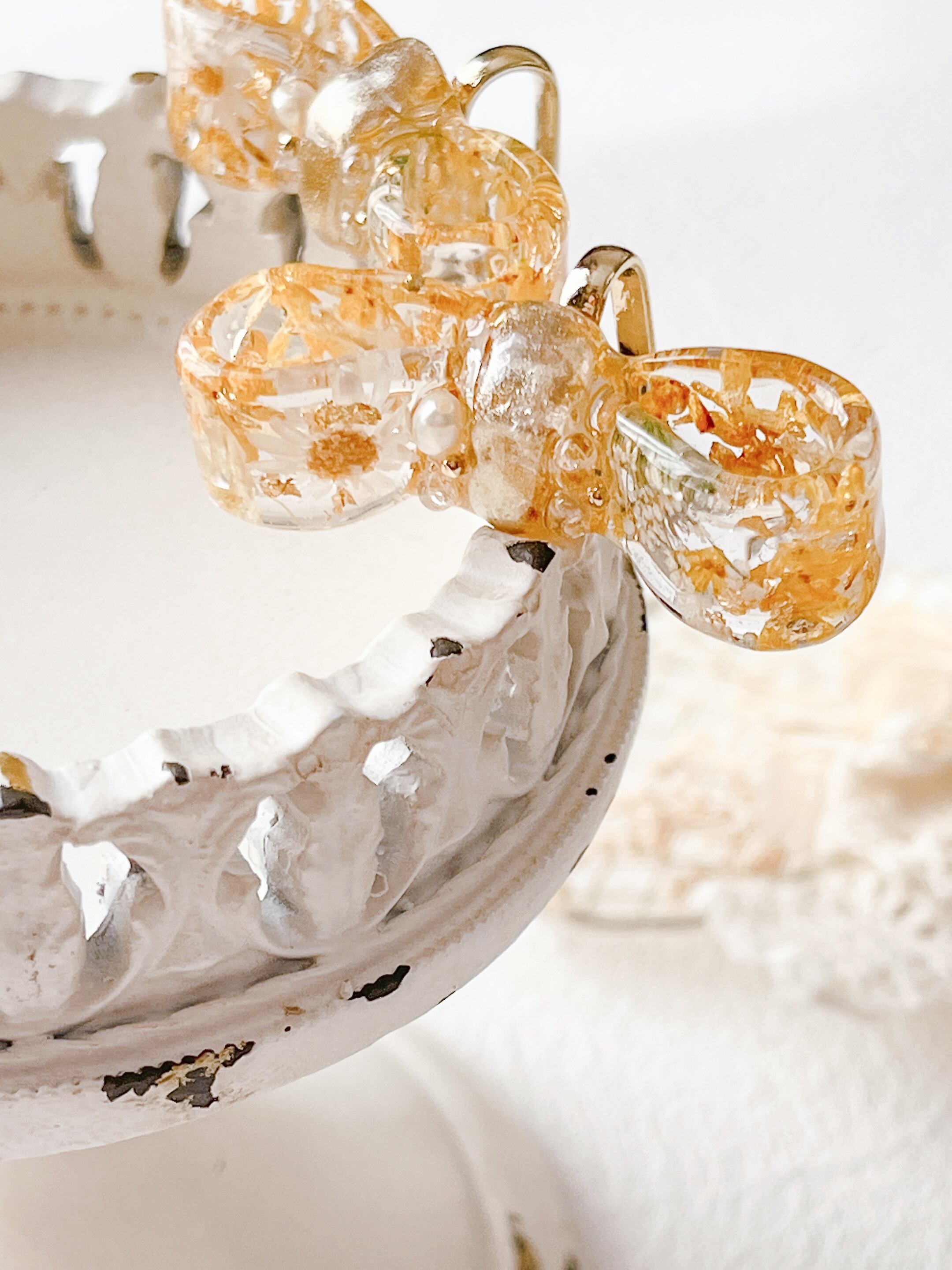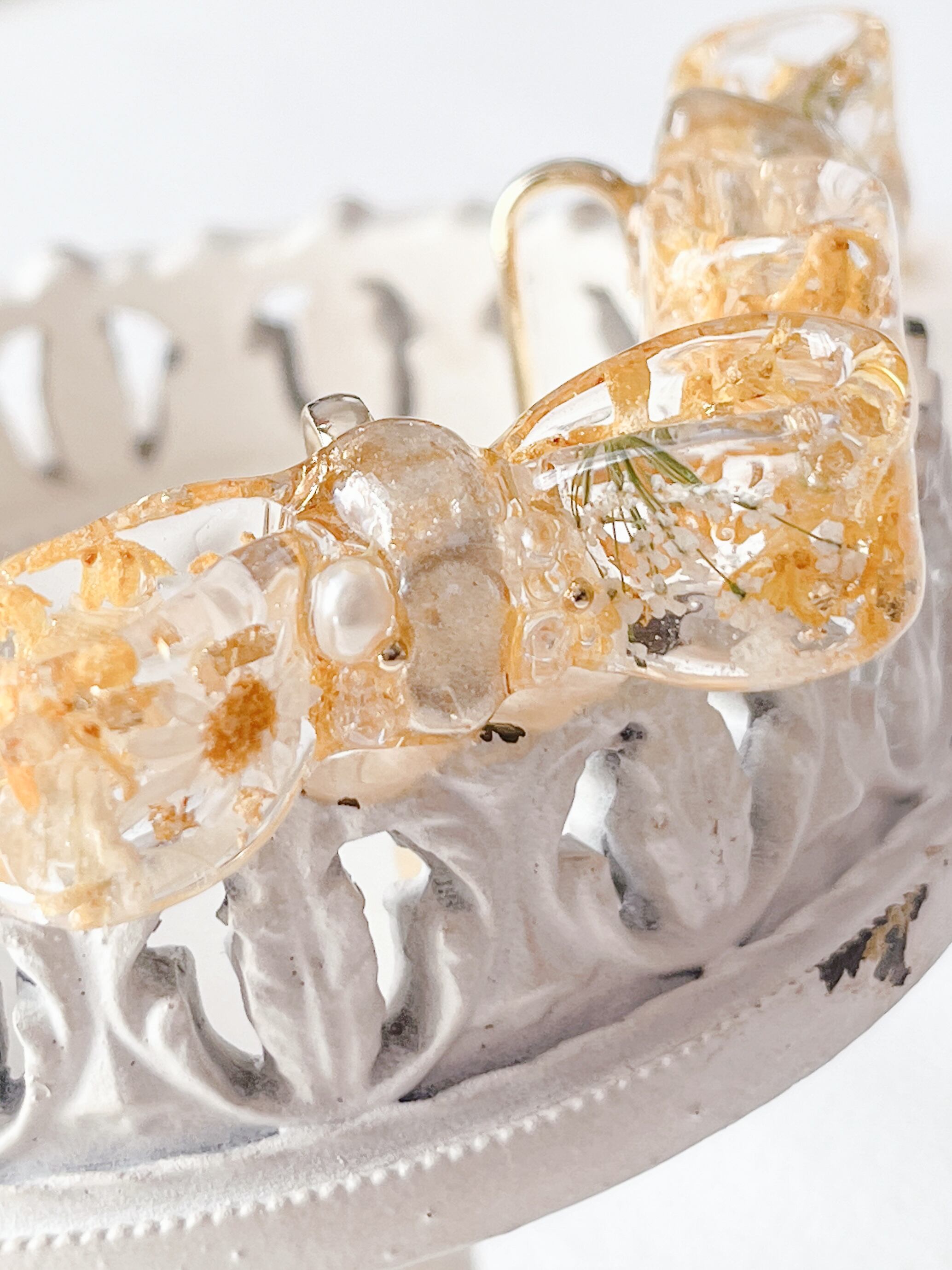 この時期限定の金木犀をたっぷりと詰め込んだ透明感のあるリボンポニーフック。