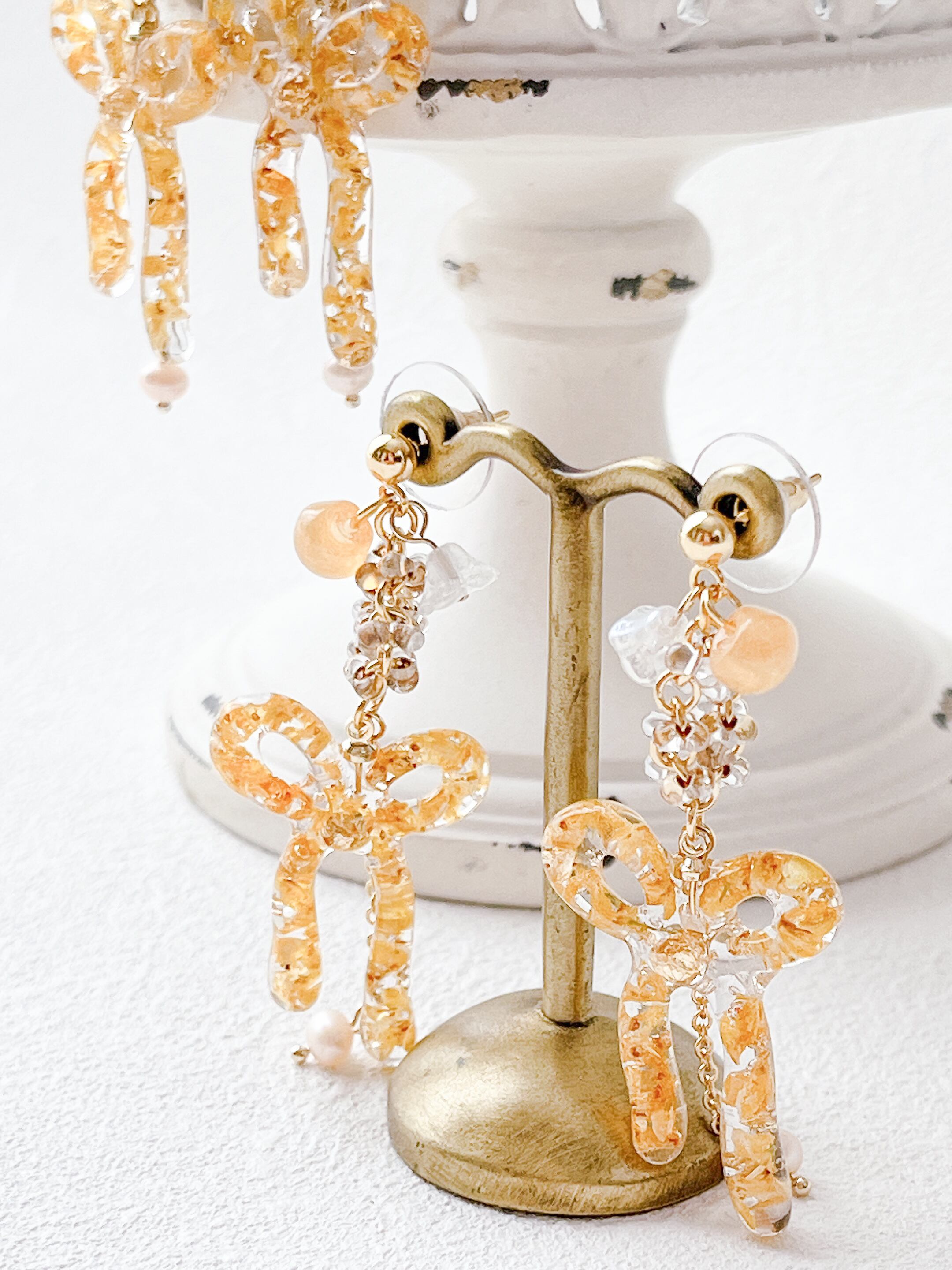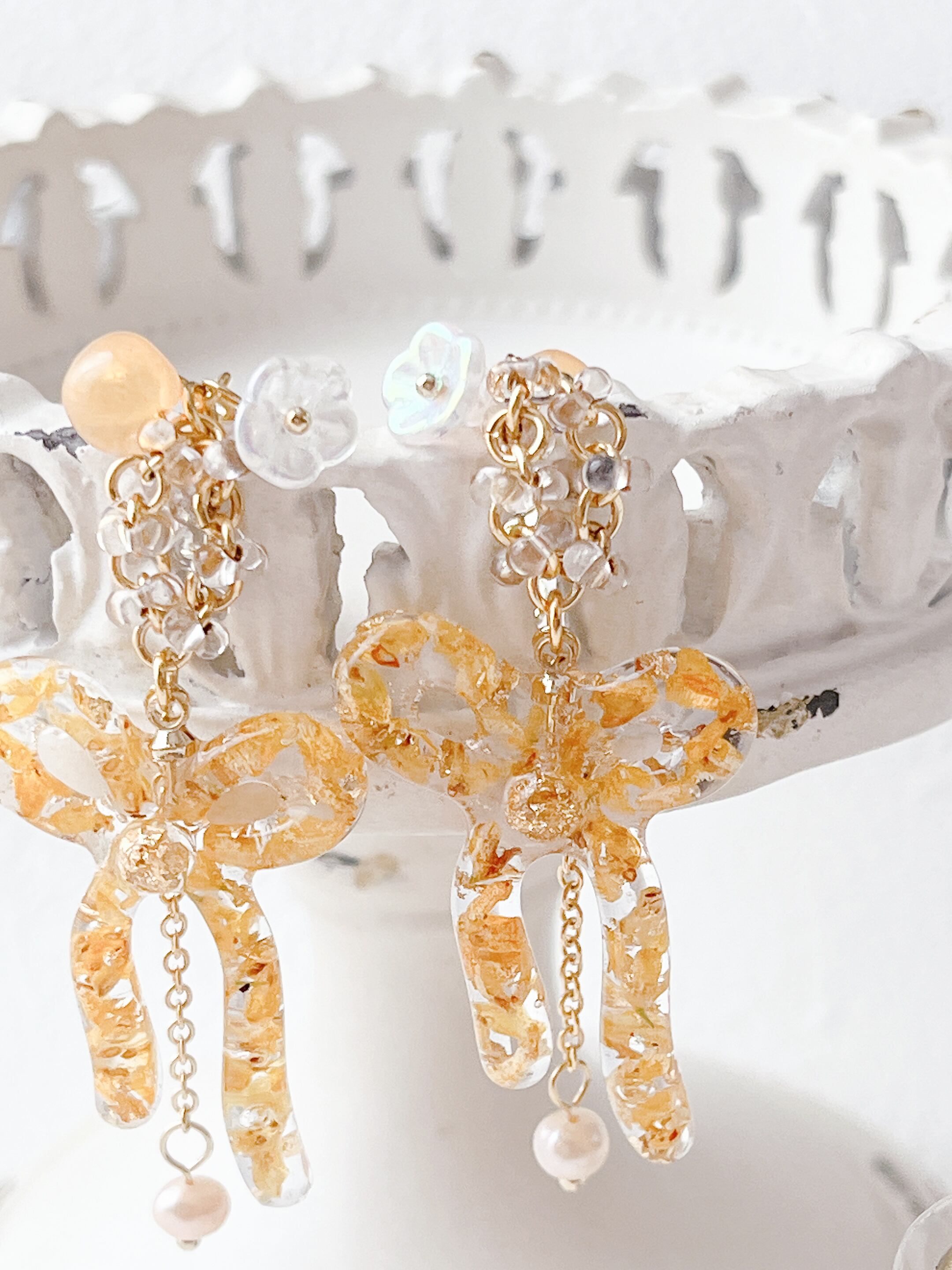 華奢な金木犀のリボンが優しく揺れる可愛いアクセサリー。