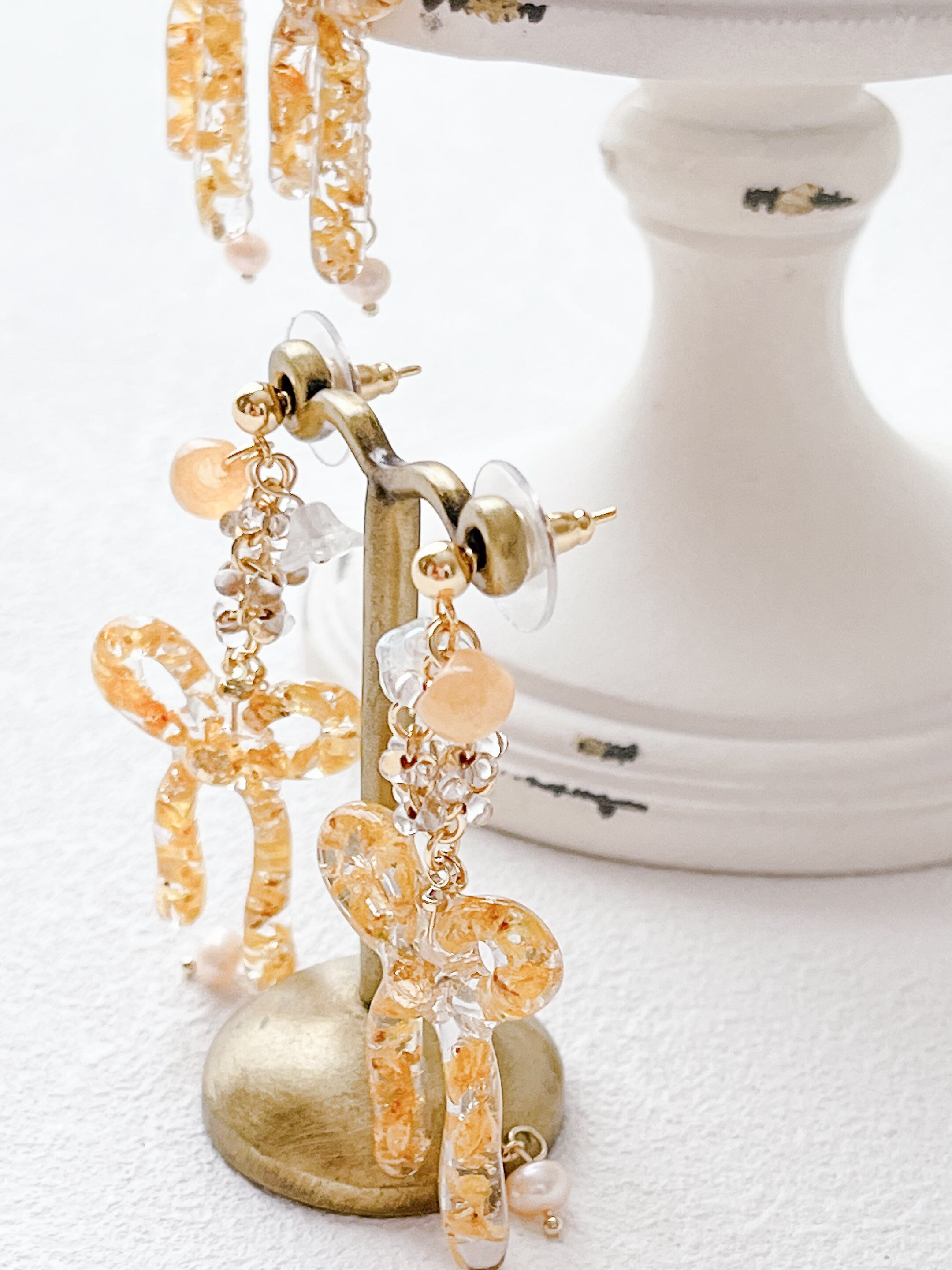 金木犀のお花を封じ込めたあたたかく甘い色合いのアクセサリーです。
