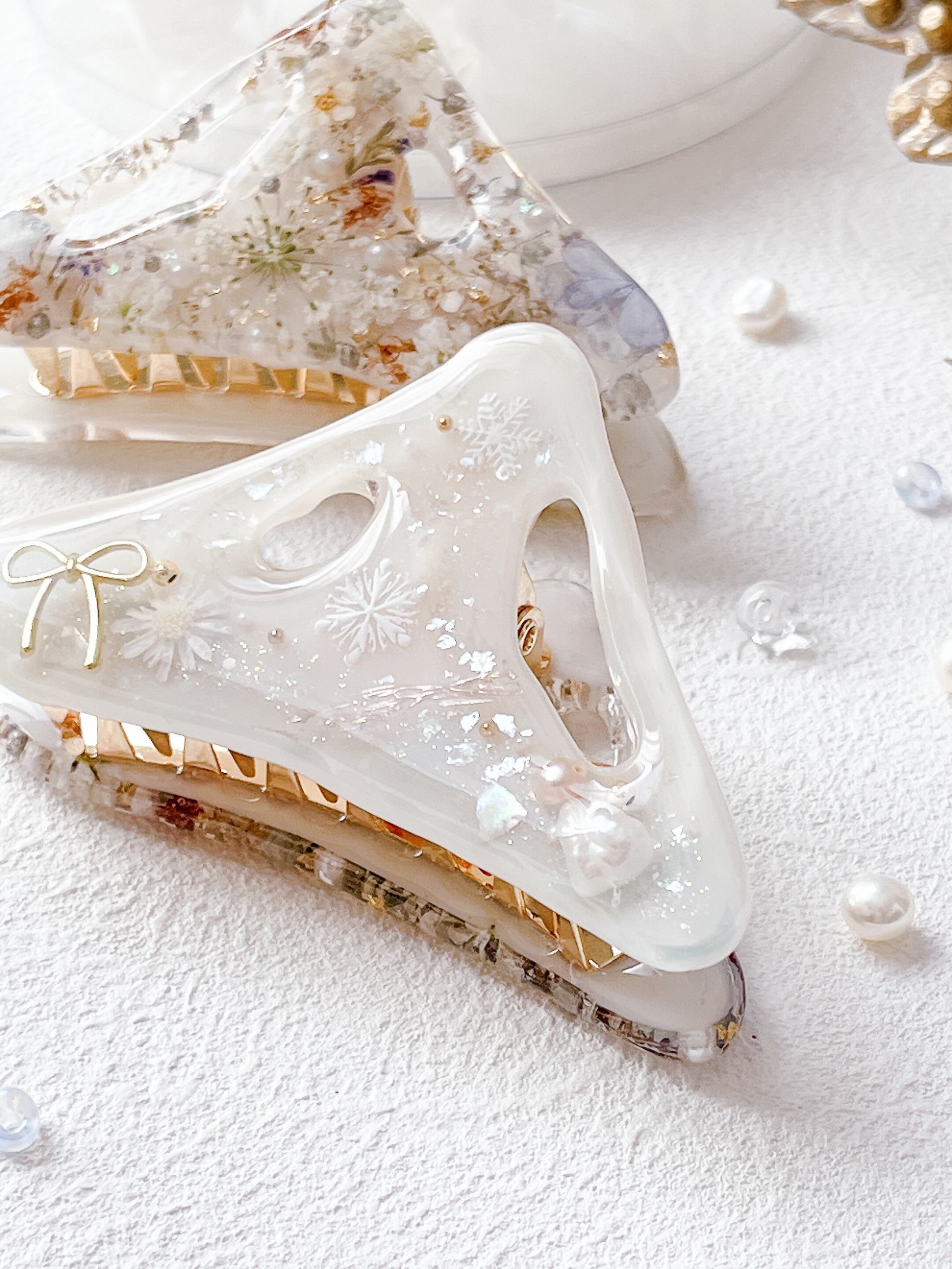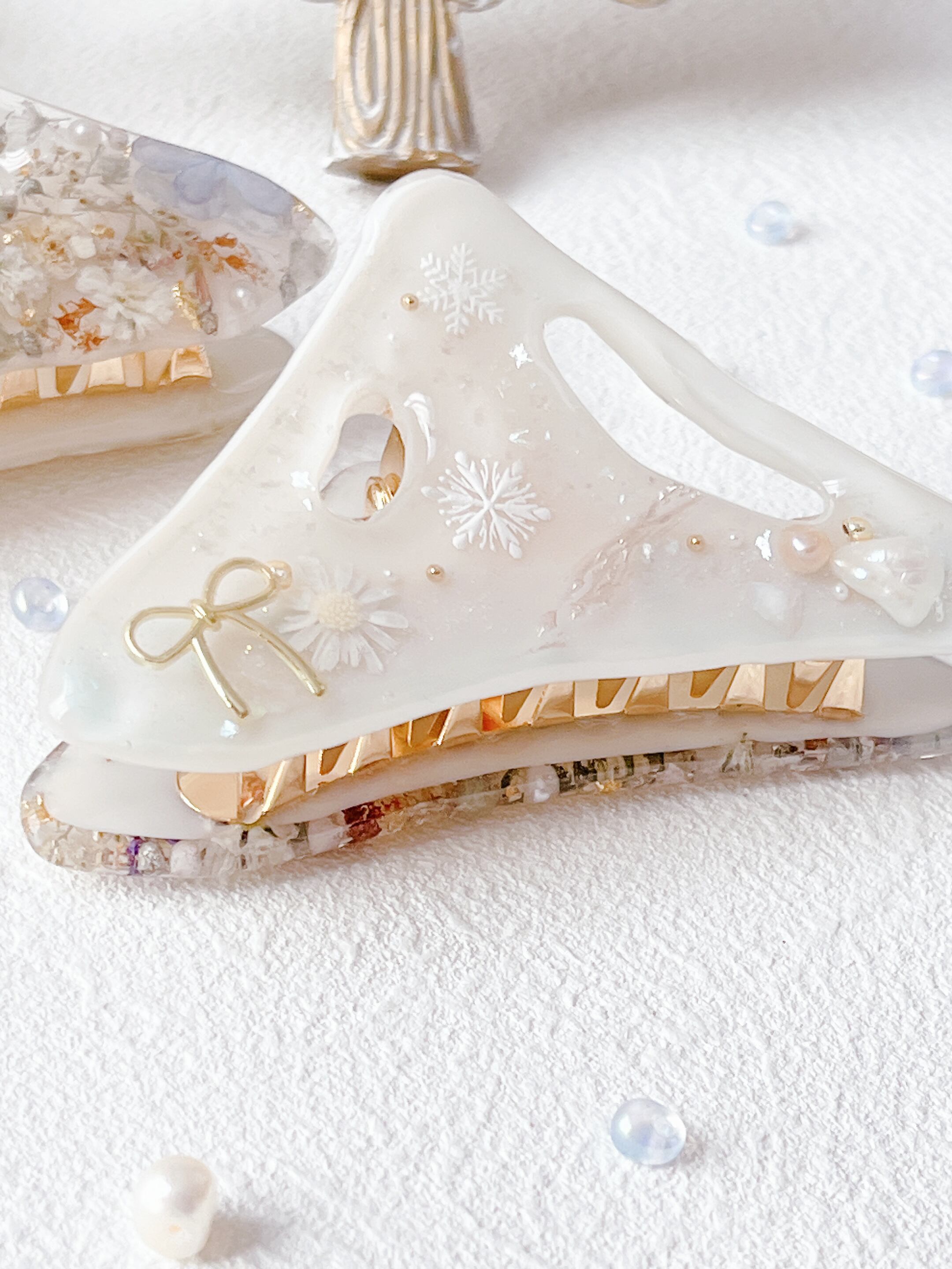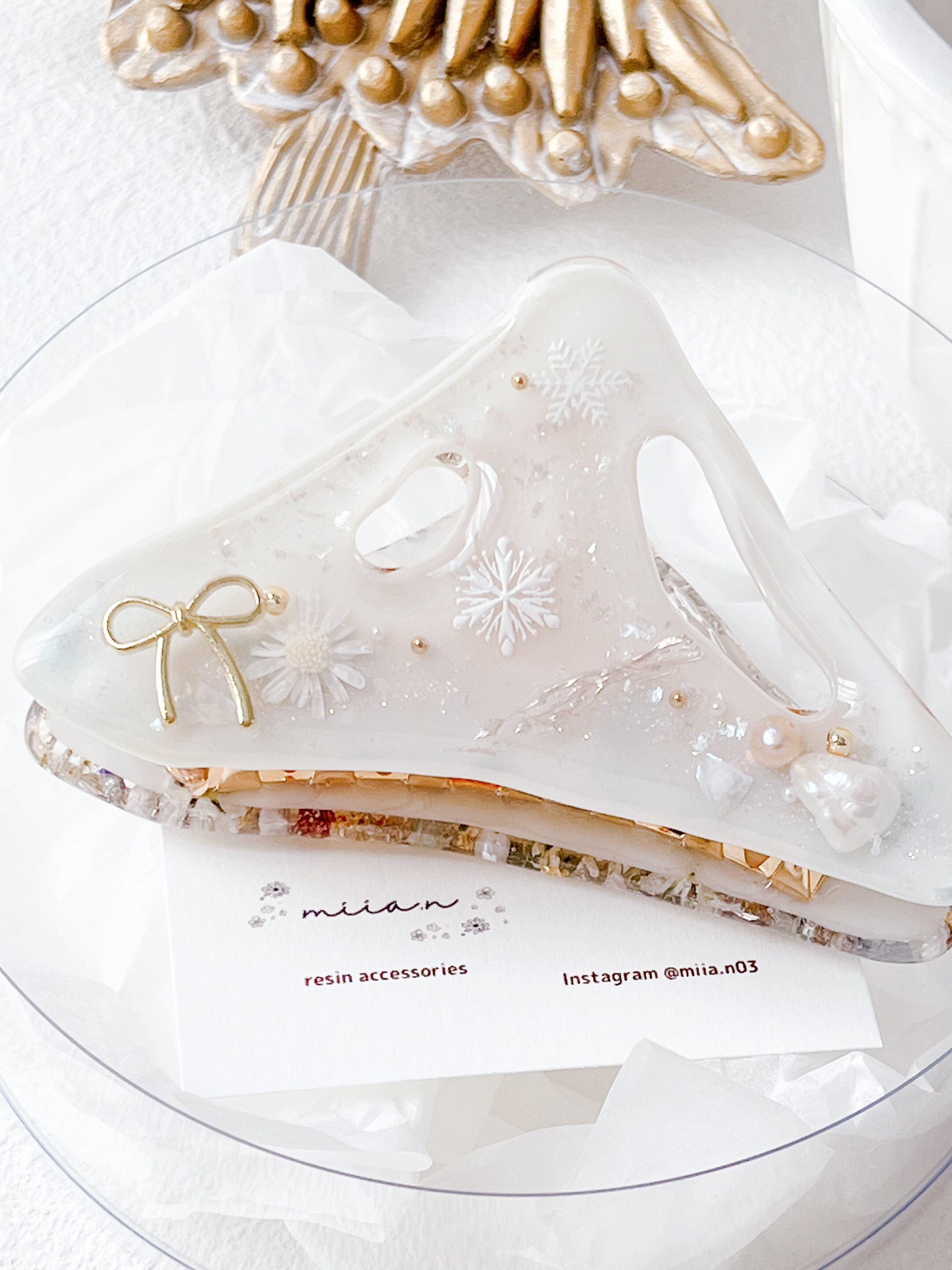 降り積った雪を表現しているような透明感溢れる冬のバンスクリップ。