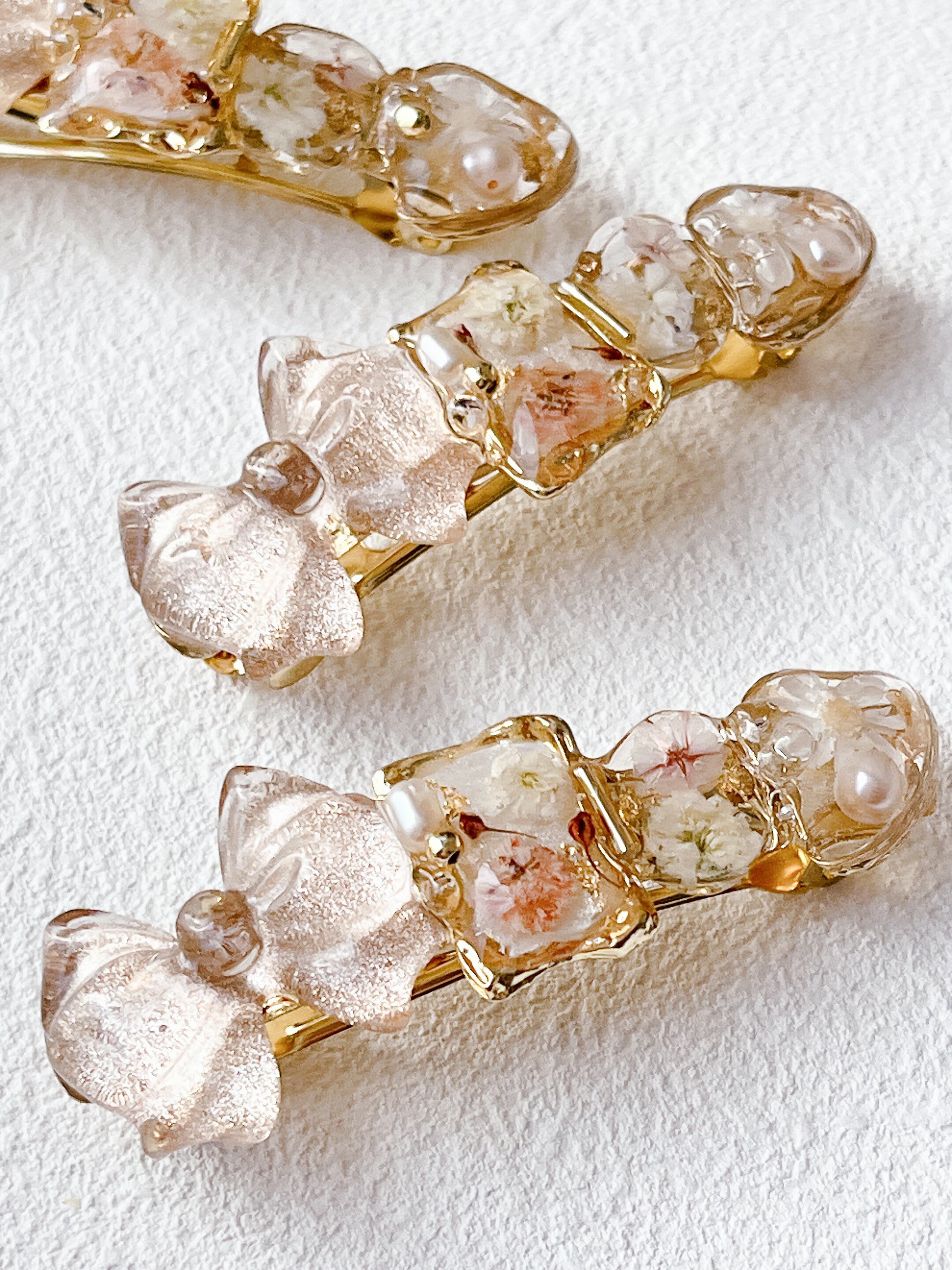 今まで作ってきたバレッタより少し小ぶりなのでがっつり髪を留めるというよりヘアアレンジにプラスアイテムとして添えるのがおすすめ。