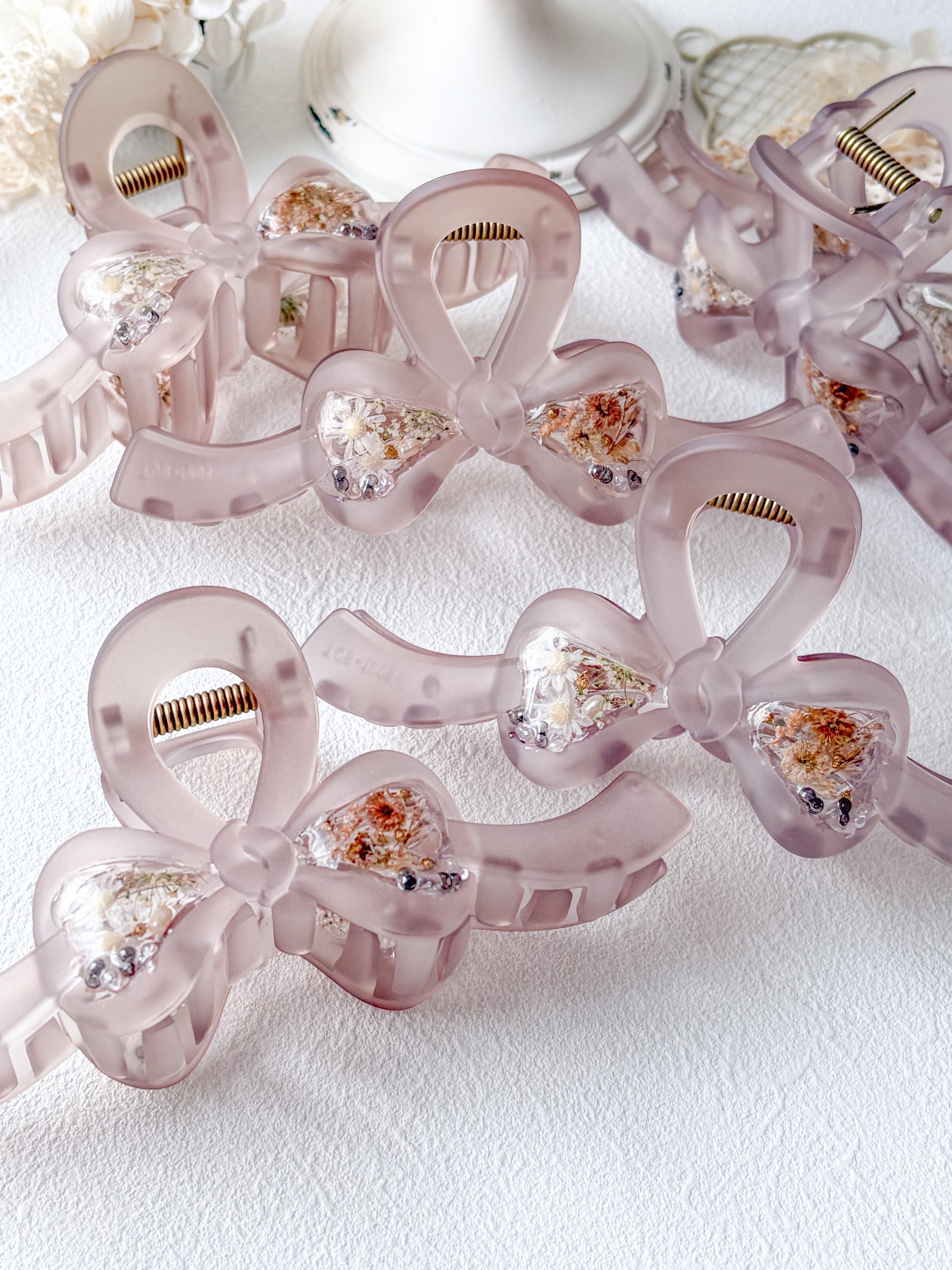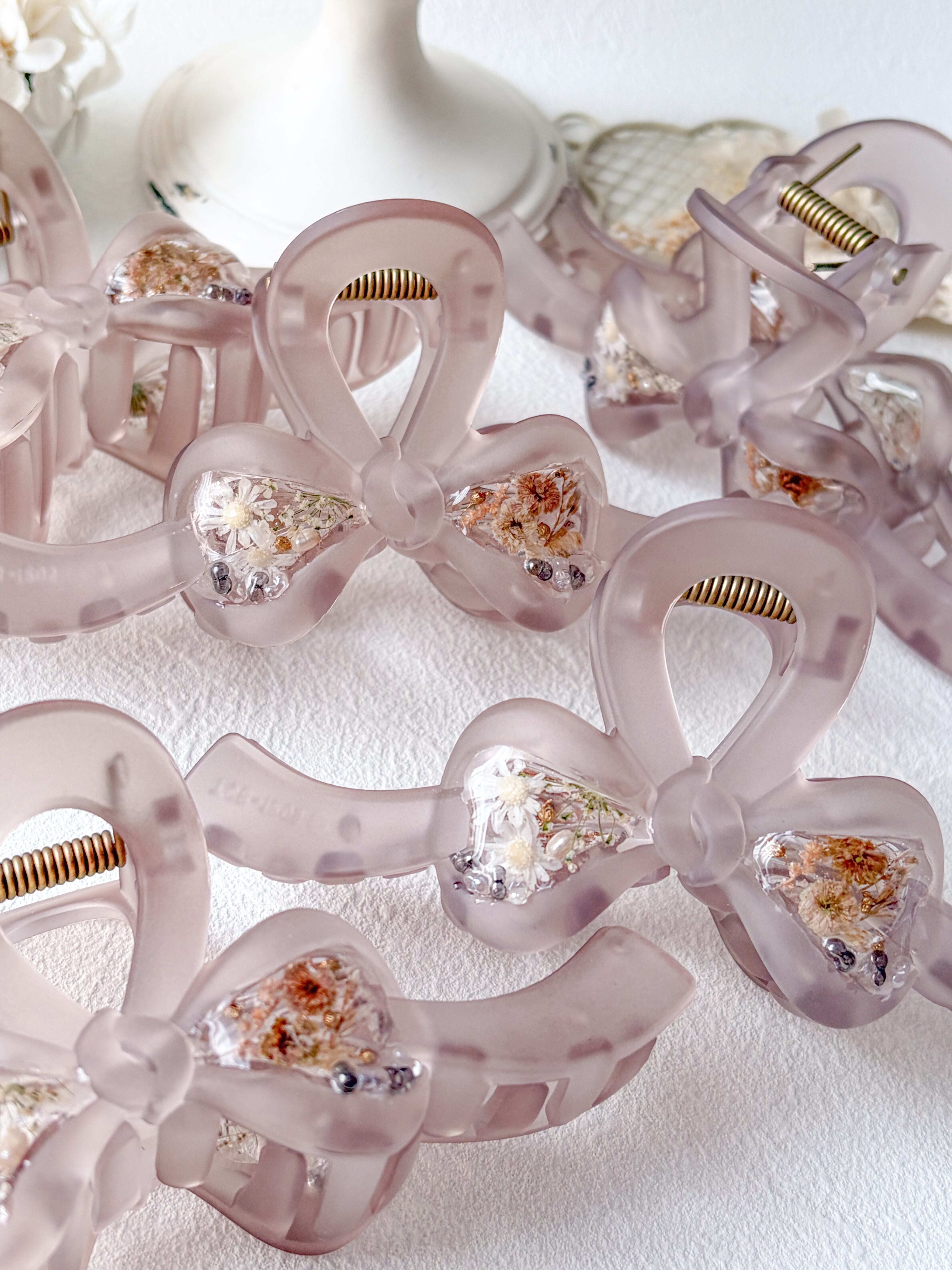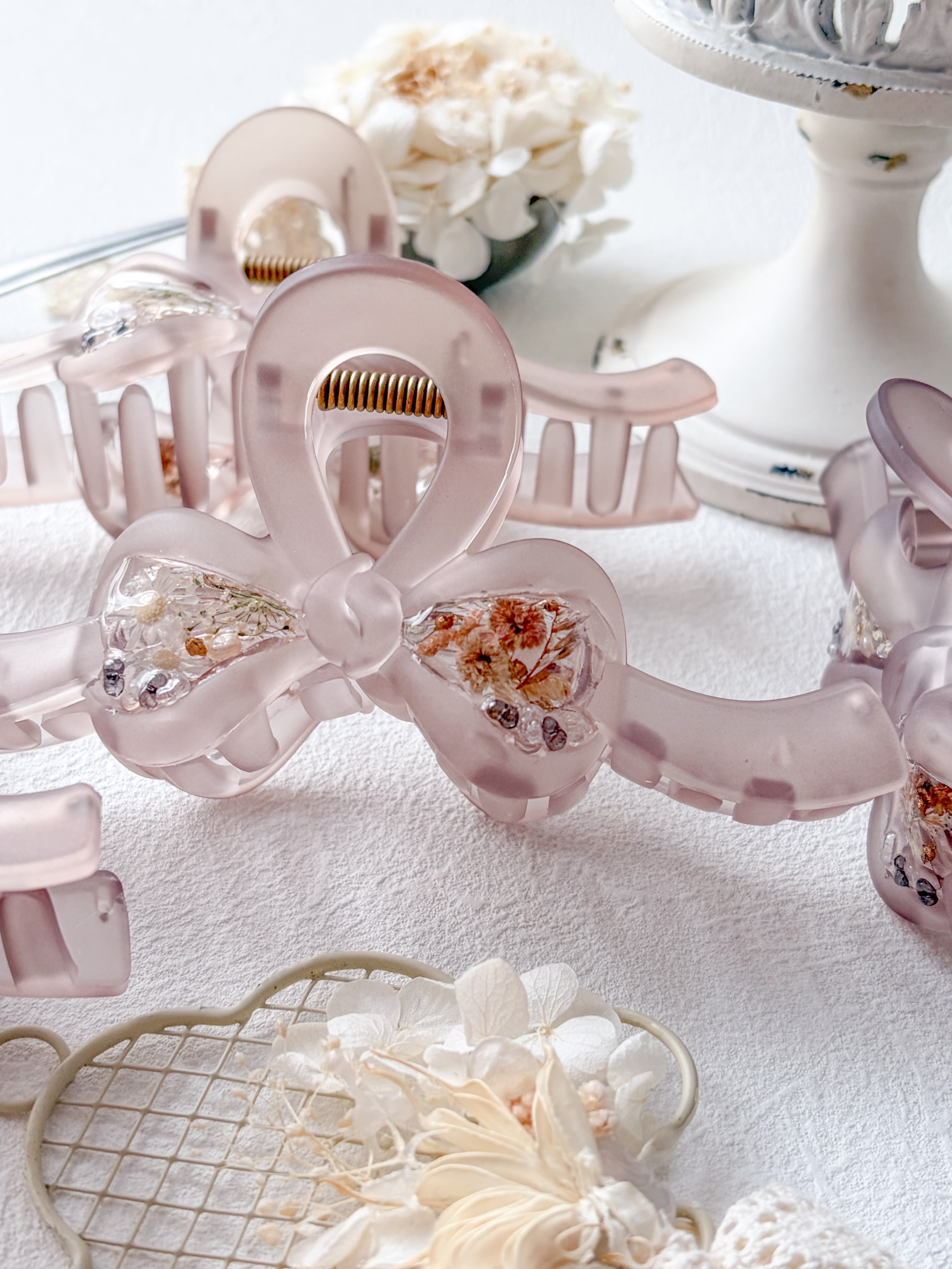ふわっとした色味できちんとまとめてくれるスフレみたいな大人かわいいリボンバンスクリップ。