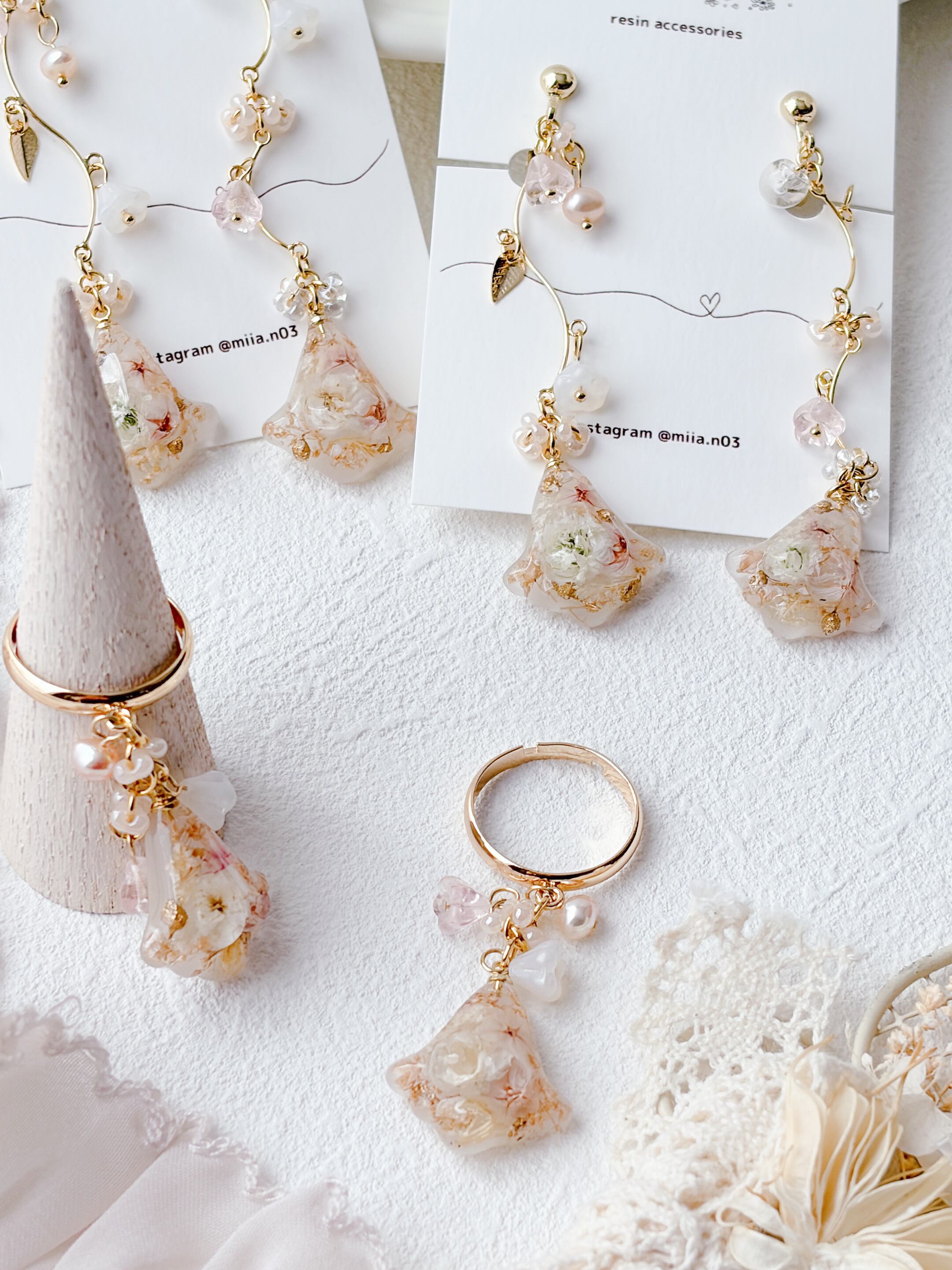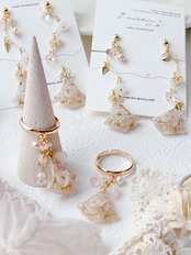 ニュアンスカラーのすずらんアクセサリー。
