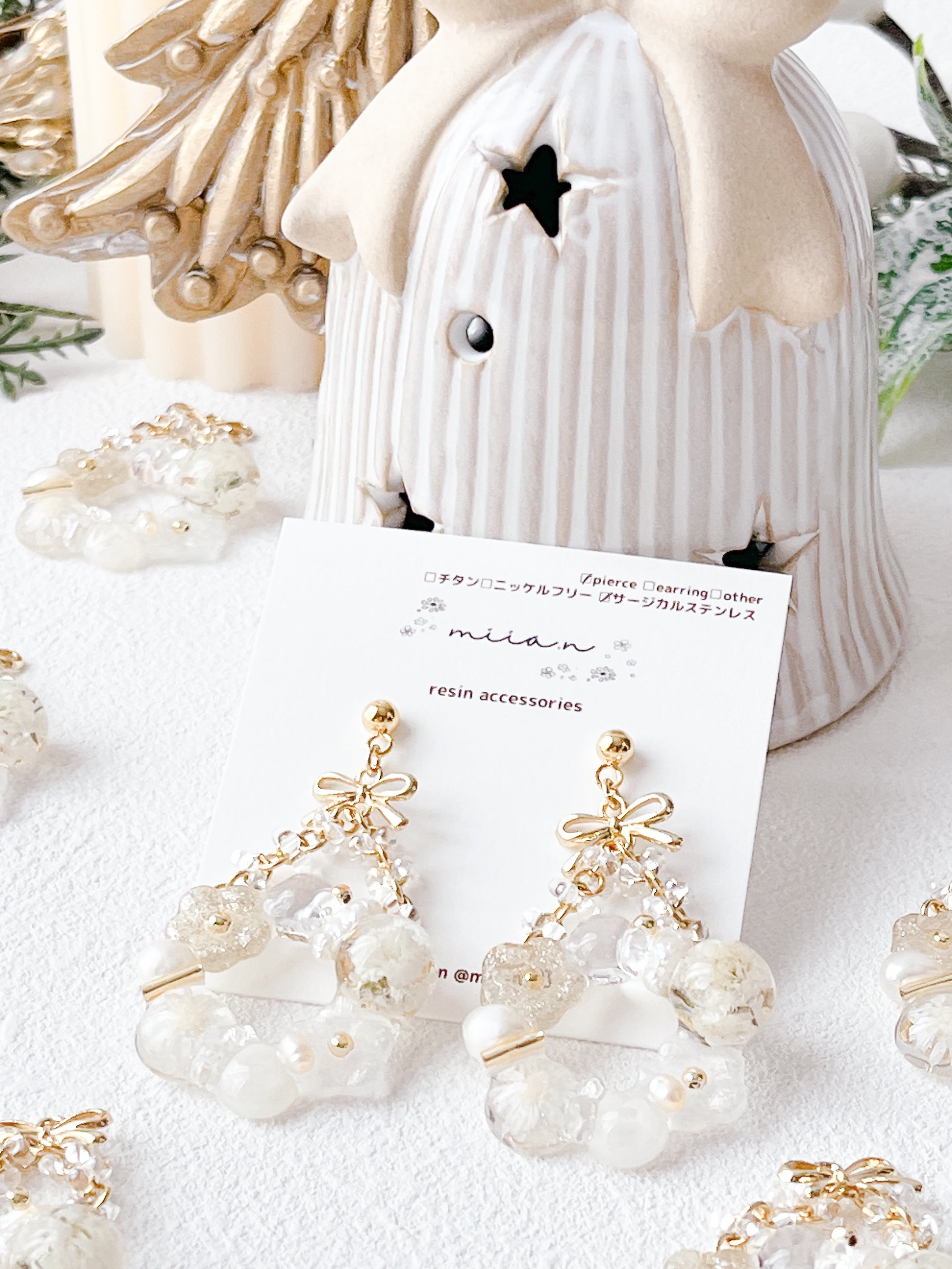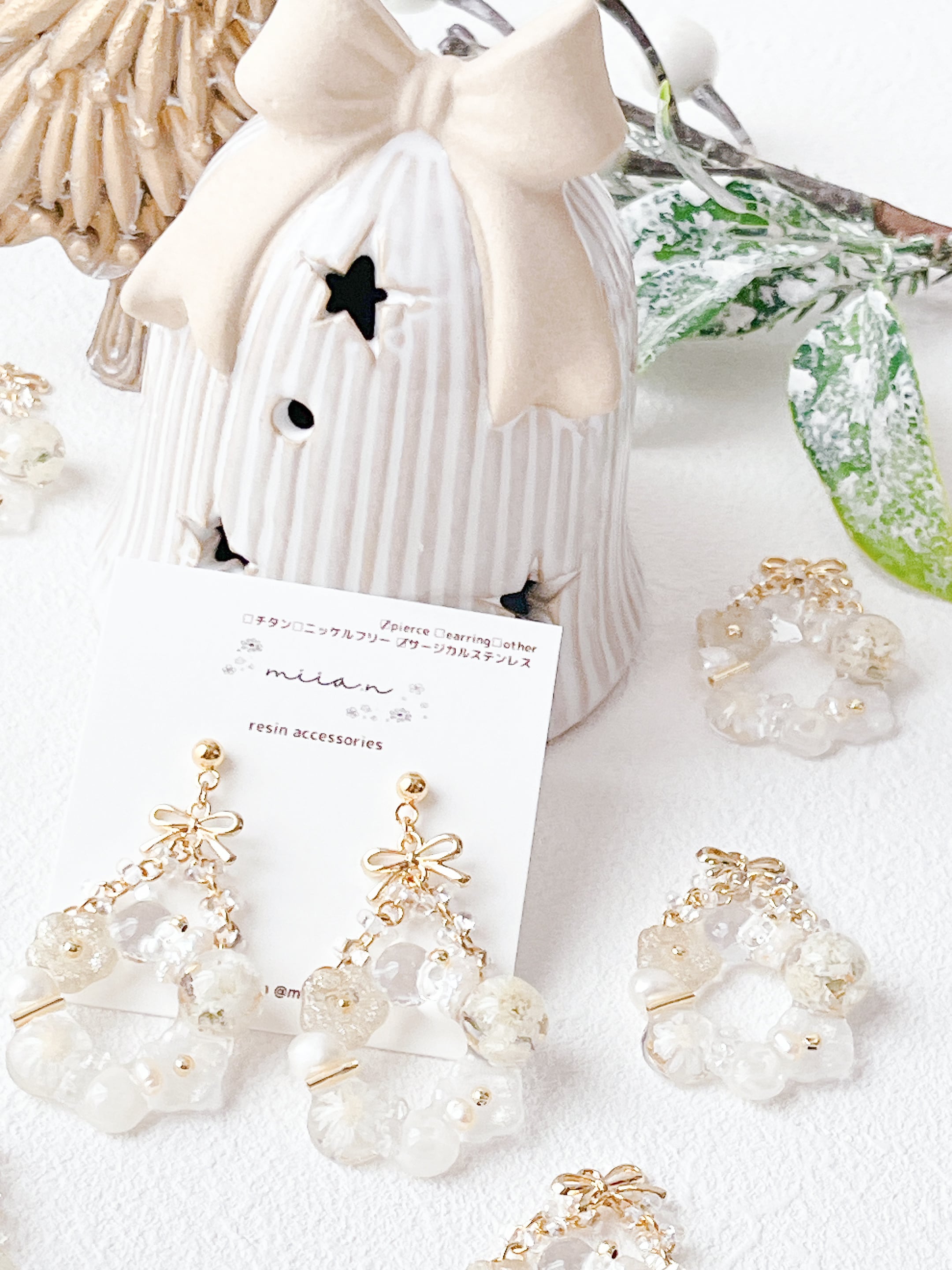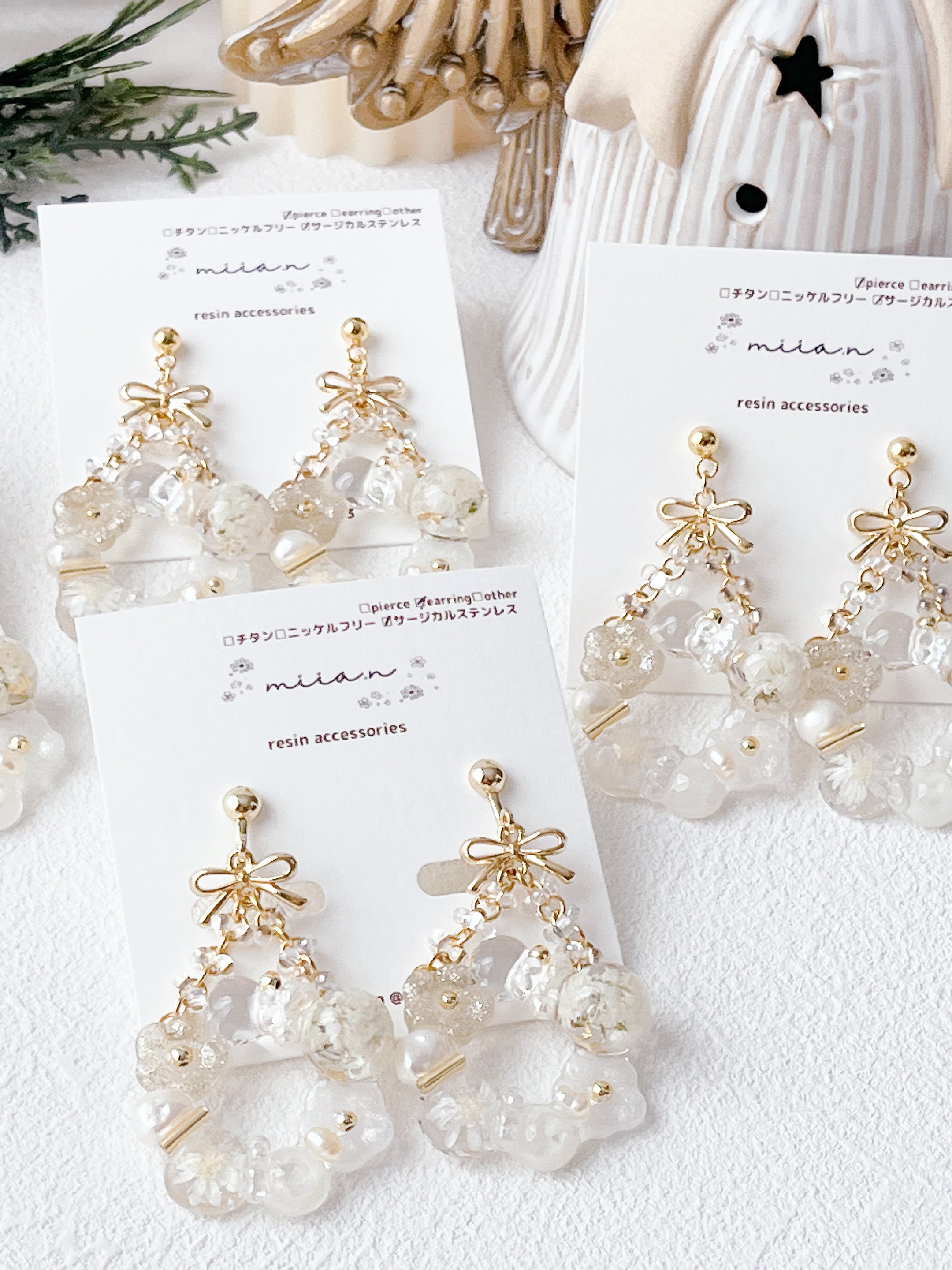 大人気のflower circleをクリスマスverにアレンジしてゆらゆら揺れるリースに仕上げました。
